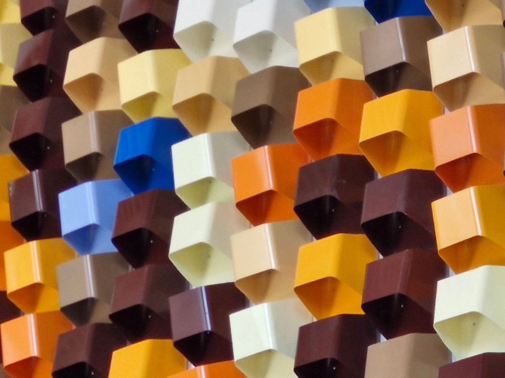 Fachada volumétrica metálica pintada